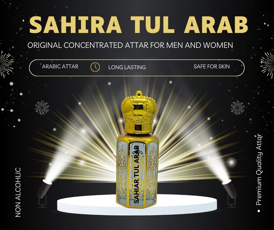 • Sahira Tul Arab Attar is a luxurious and enchanting fragrance inspired by the mystique of the Arabian nights.